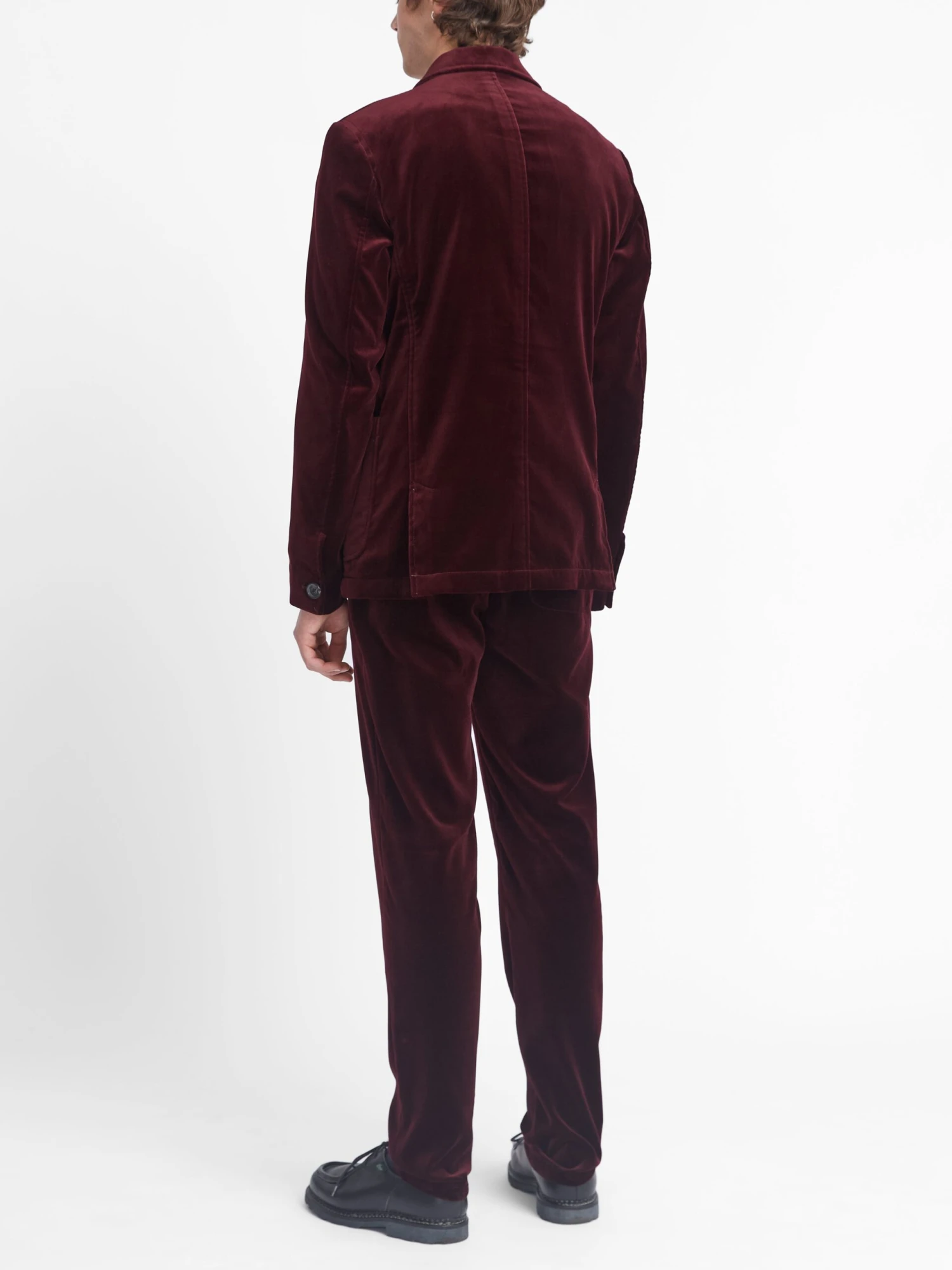 Part of our exclusive Mr Porter Velvet Capsule, this unstructured peak lapel Mansfield jacket in burgundy velvet is a smart and bold addition to your tailoring rotation and comes with our tapered fishtail trousers. Super tactile and with a light natural drape, it’s a really textural way to elevate your smart casual wardrobe.