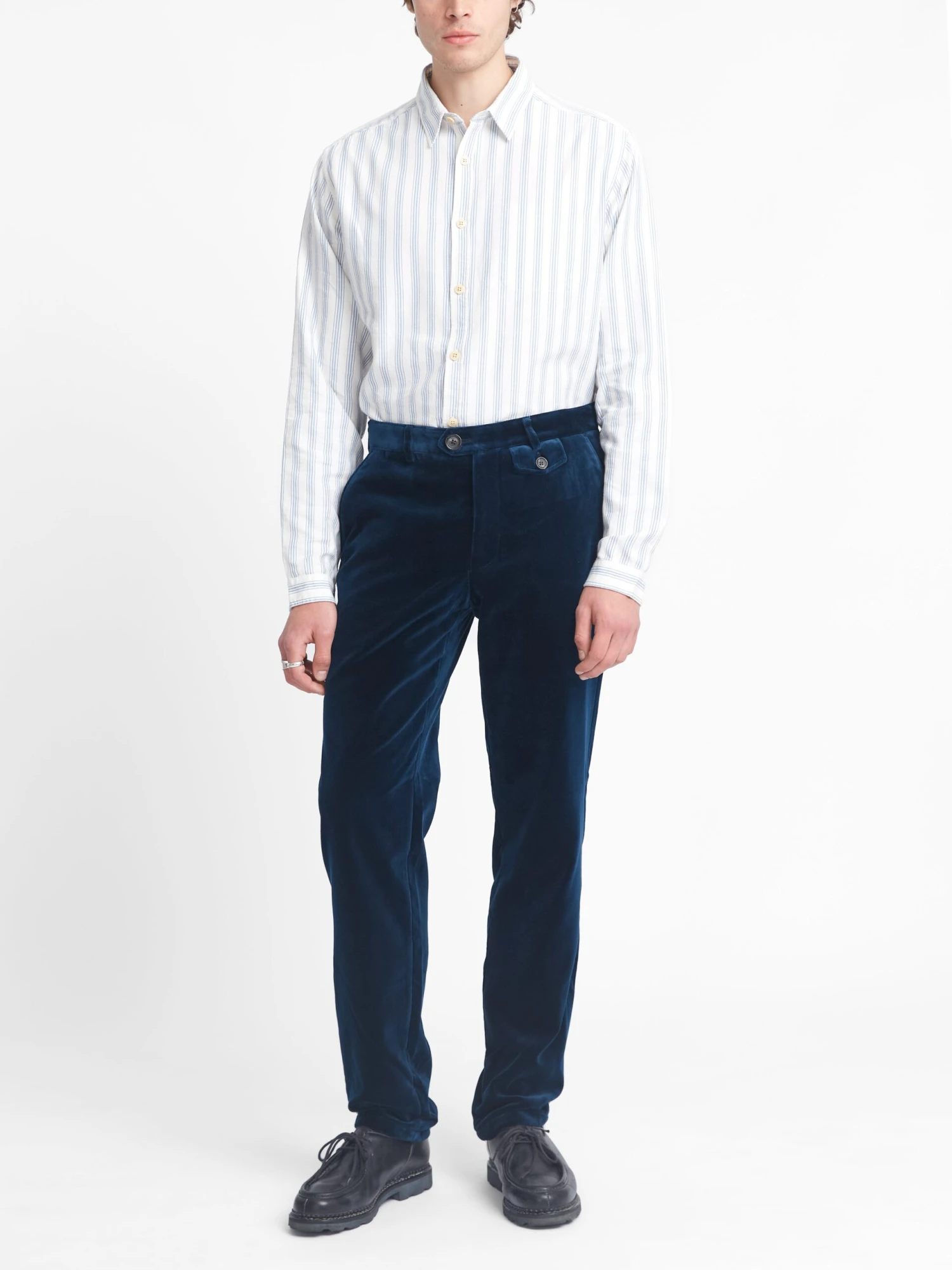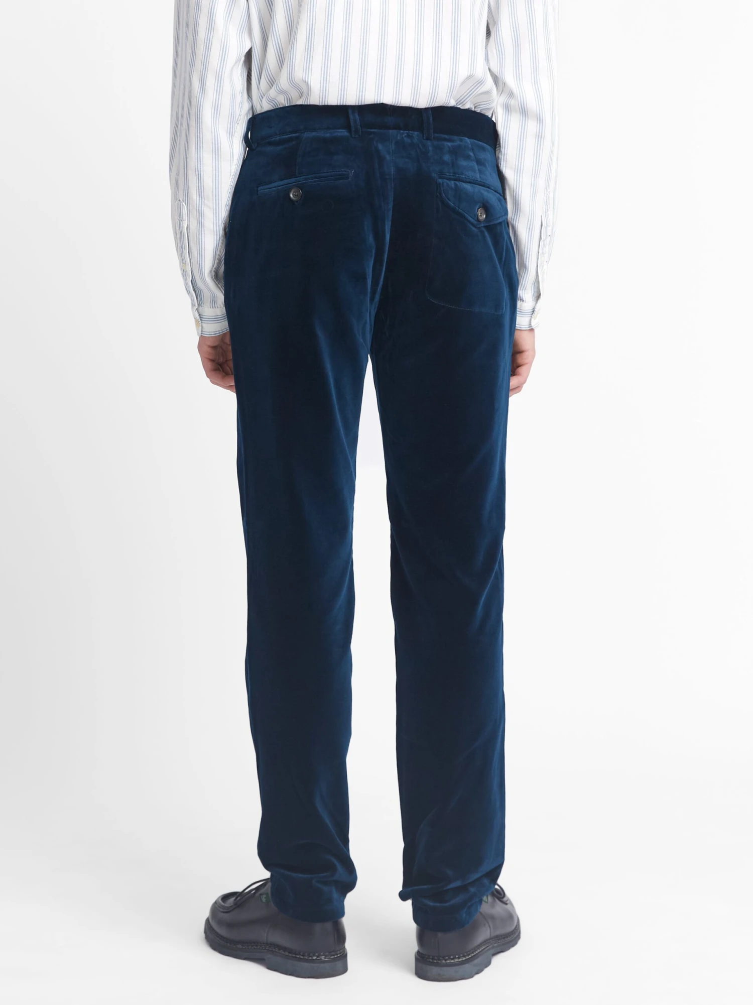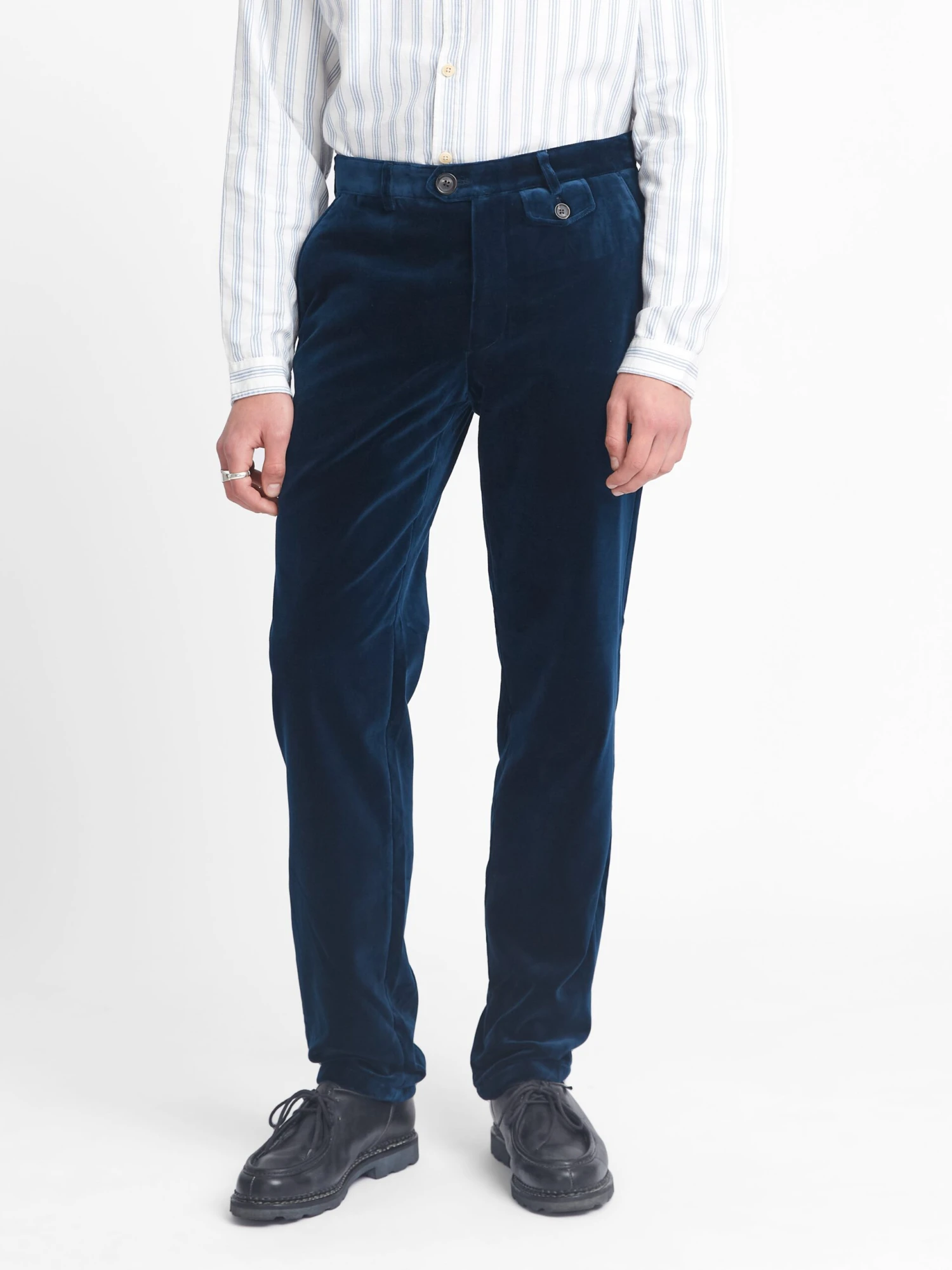 Oliver Spencer’s fishtail trousers are so-called because of the v-shaped cut in the rear of the waistband, which is a reference to classic men’s trousers that had room for buttons for braces. This style is crafted from a soft cotton velvet cloth and can be worn as part of a suit or as separates.