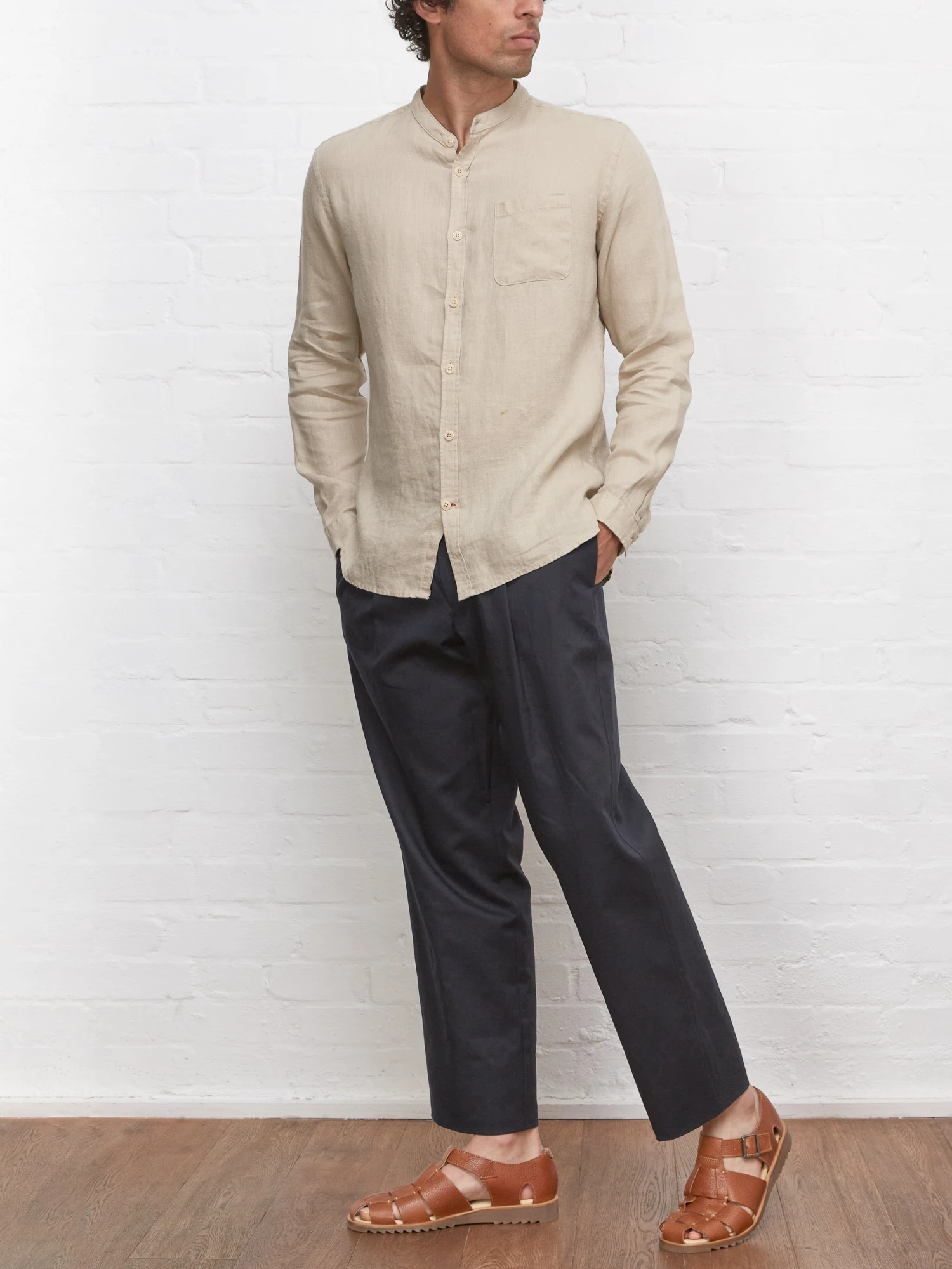 A workwear classic, the grandad shirt has stood the test of time as a relaxed off-duty shirt. This season, we’ve used a beautifully soft slubby linen in a beige tone to create this iteration of the classic, which is perfect paired with jeans or casual tailoring for a laid-back summer look.