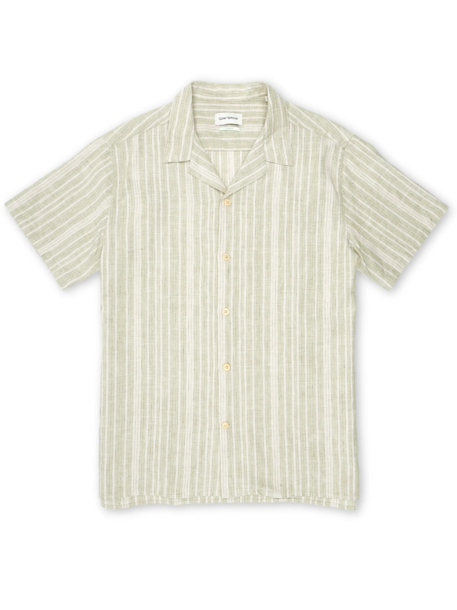Inspired by the classic Cuban camp collar shirt, the Havana short-sleeve shirt is a relaxed tropical style that is perfect for all of your spring and summer fits. Constructed from a soft and lightweight organic cotton and linen blend, this green style will pair with all manner of neutral tone trousers and shorts this season.