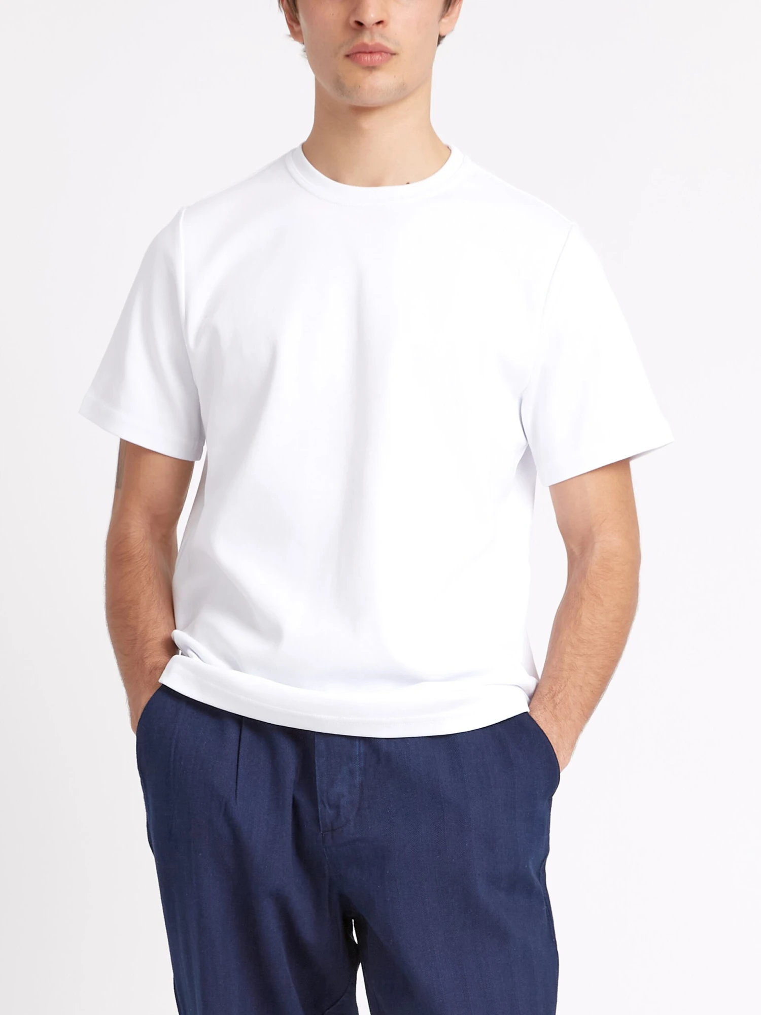 Our heavy tee is exactly that! Constructed from 100% heavyweight organic cotton, it boasts a satisfyingly heavy drape, helping to keep its shape. Smarter than your average t-shirt, it can be worn on its own or with relaxed tailoring for a sharp yet dressed down vibe.