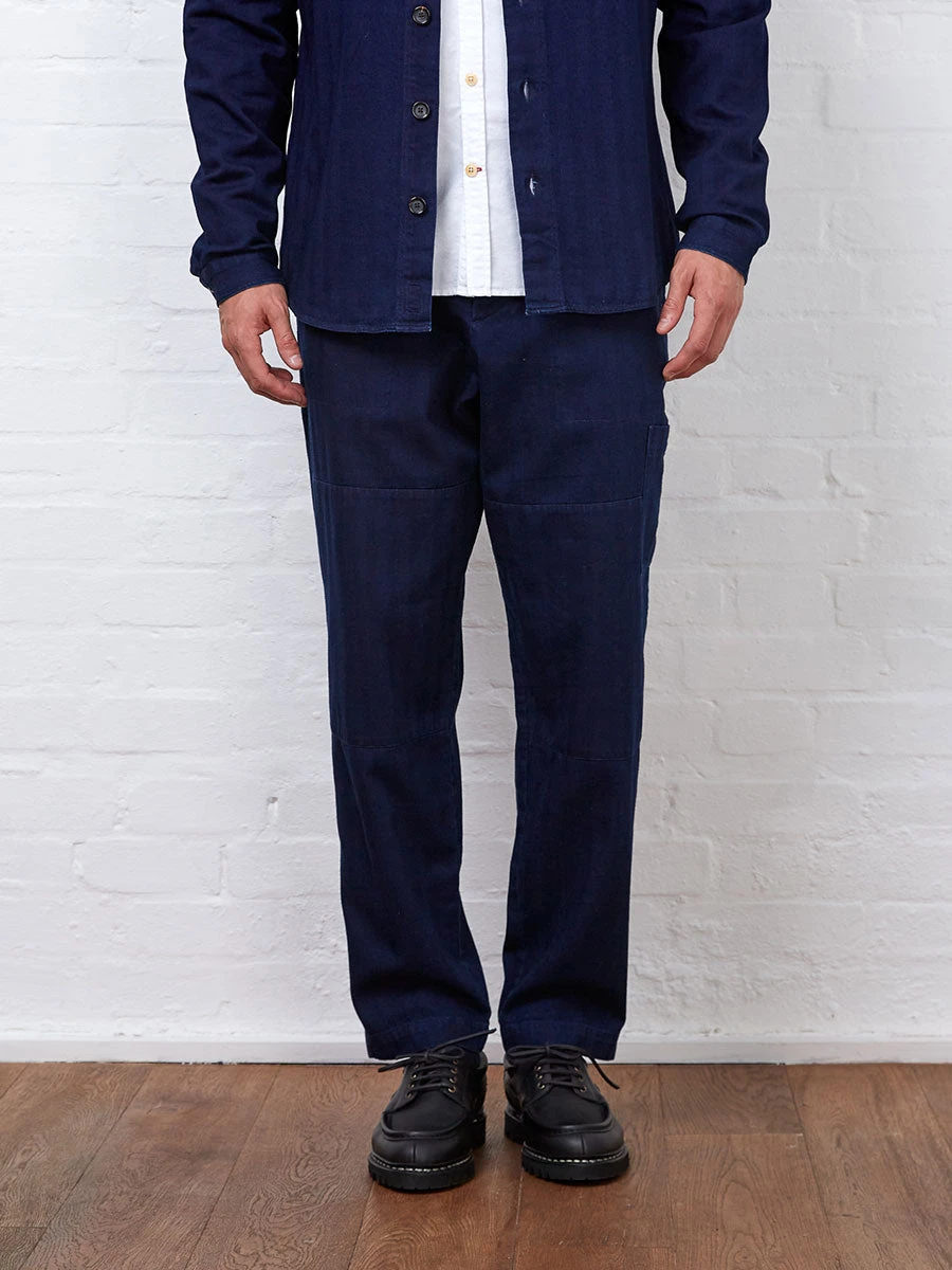 Judo trousers provide a contemporary alternative to a traditional men’s trouser. With a relaxed fit and a cropped finish, the Judo sits slightly higher on the waist with a gradual taper towards the hem. This style has been cut from 100% indigo-dyed cotton.