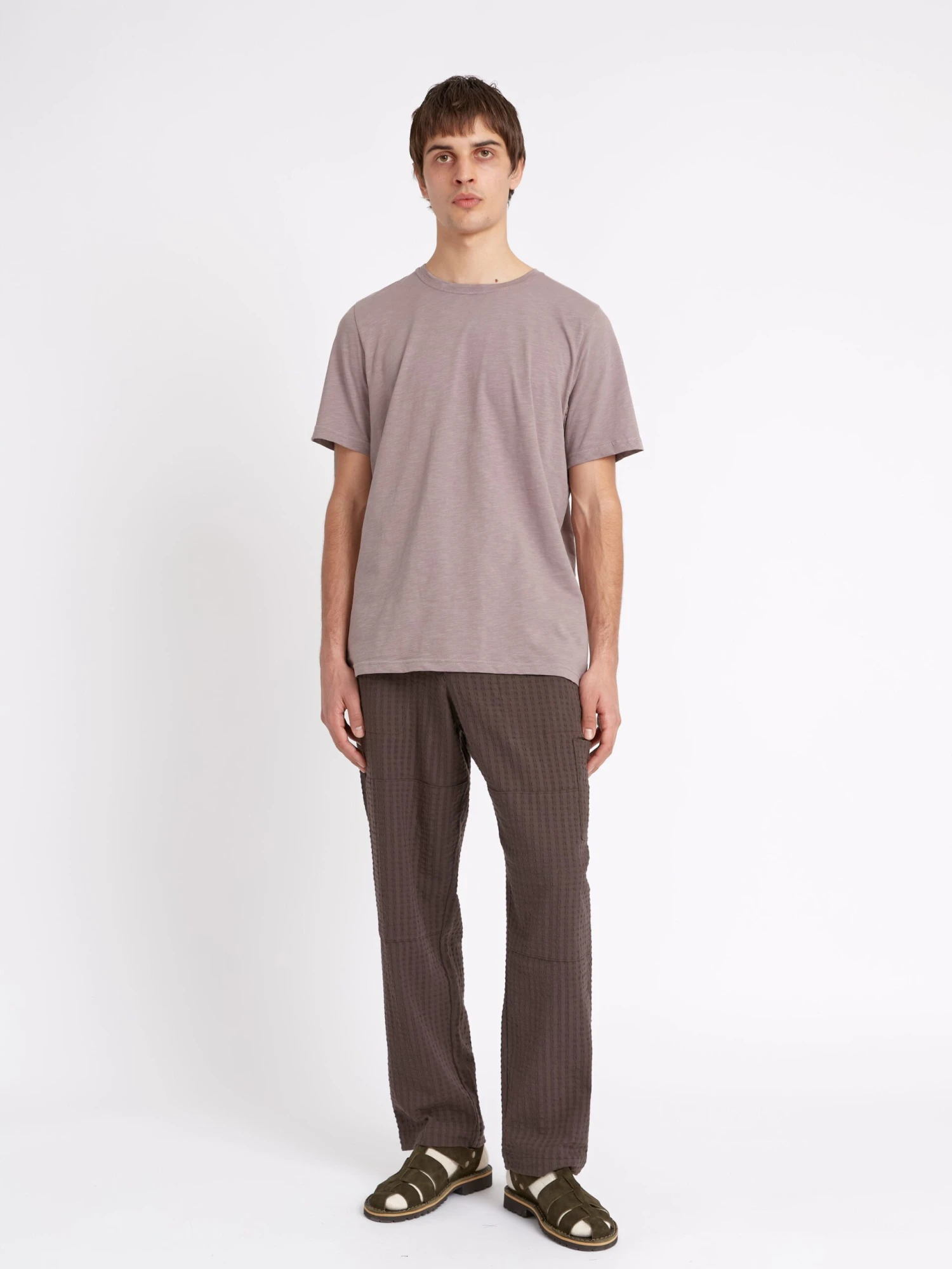 Judo trousers provide a contemporary alternative to a traditional men’s trouser. With a relaxed fit and a cropped finish, the Judo sits slightly higher on the waist with a gradual taper towards the hem. This organic cotton version is subtly textural thanks to a delicate stitch detail, and perfectly lightweight for a relaxed spring/summer wardrobe.