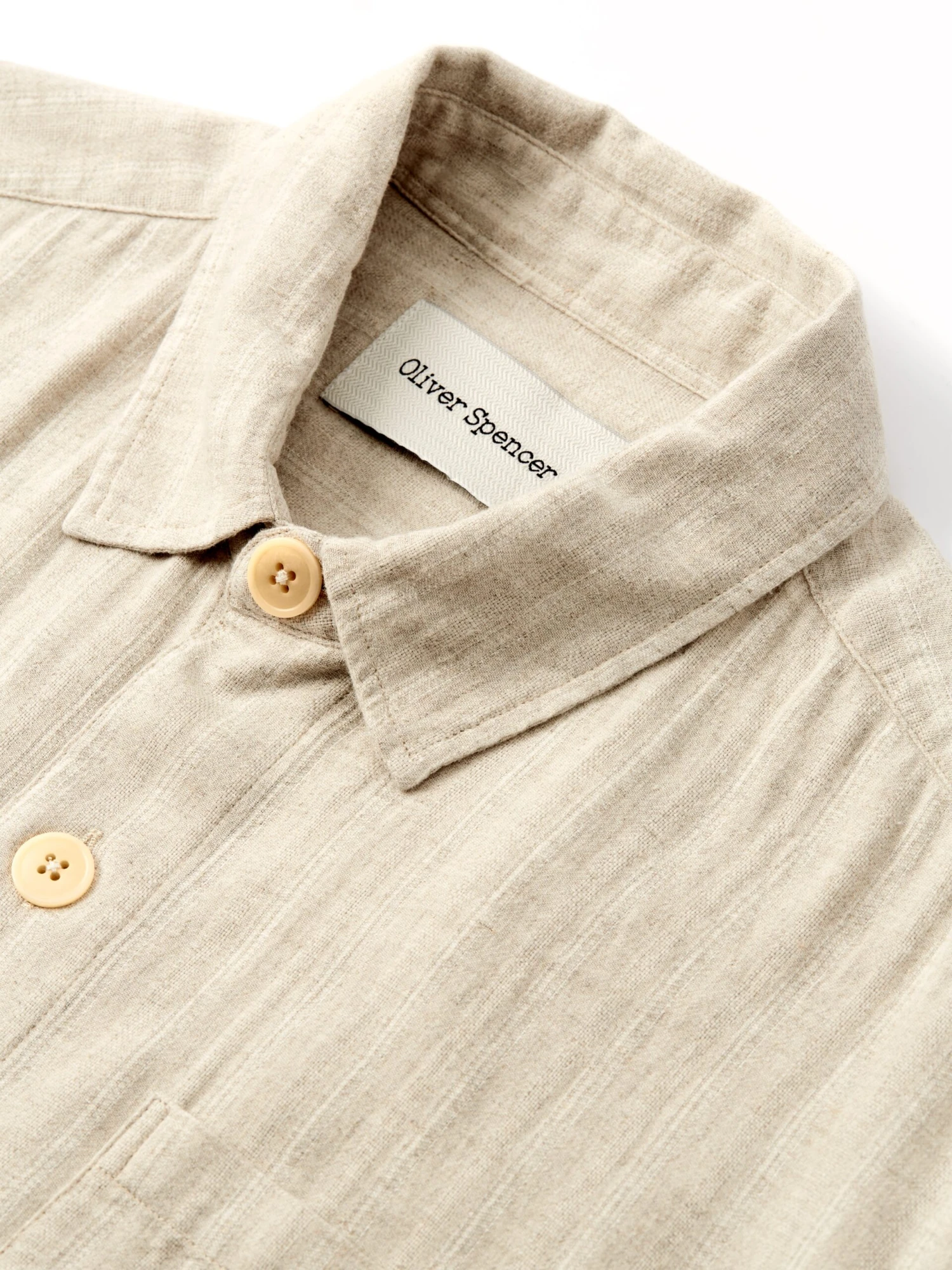 The Milford is a short jacket that’s big on style and makes for a versatile spring layer. It’s a shacket in modern parlance, crafted from a lightweight cotton and linen blend so that it feels like a shirt but acts like a jacket.