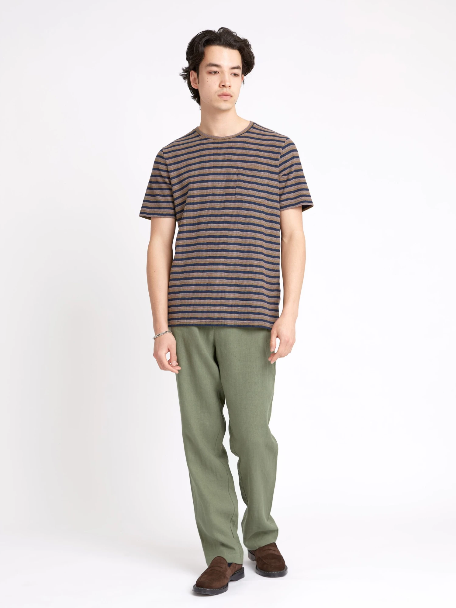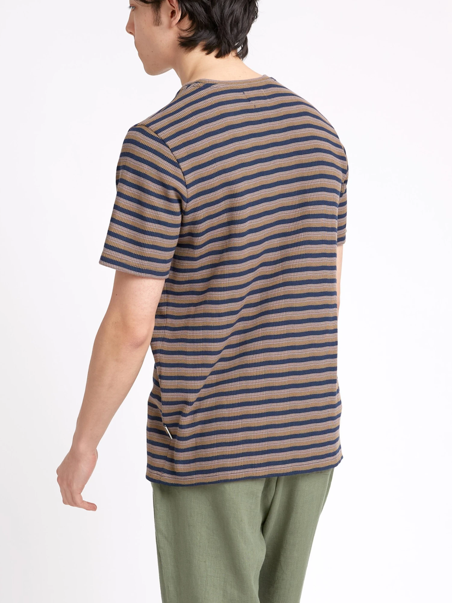 Crafted from a cotton and modal blend, Oli’s t-shirt is silky soft to the touch, and makes for a beautiful spring tee. This striped version pairs well with khaki chinos and dark denim.