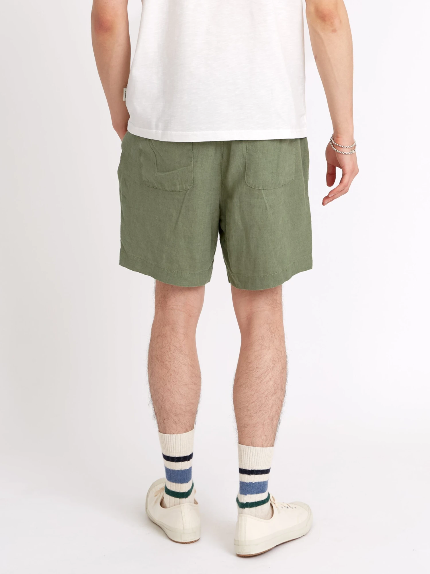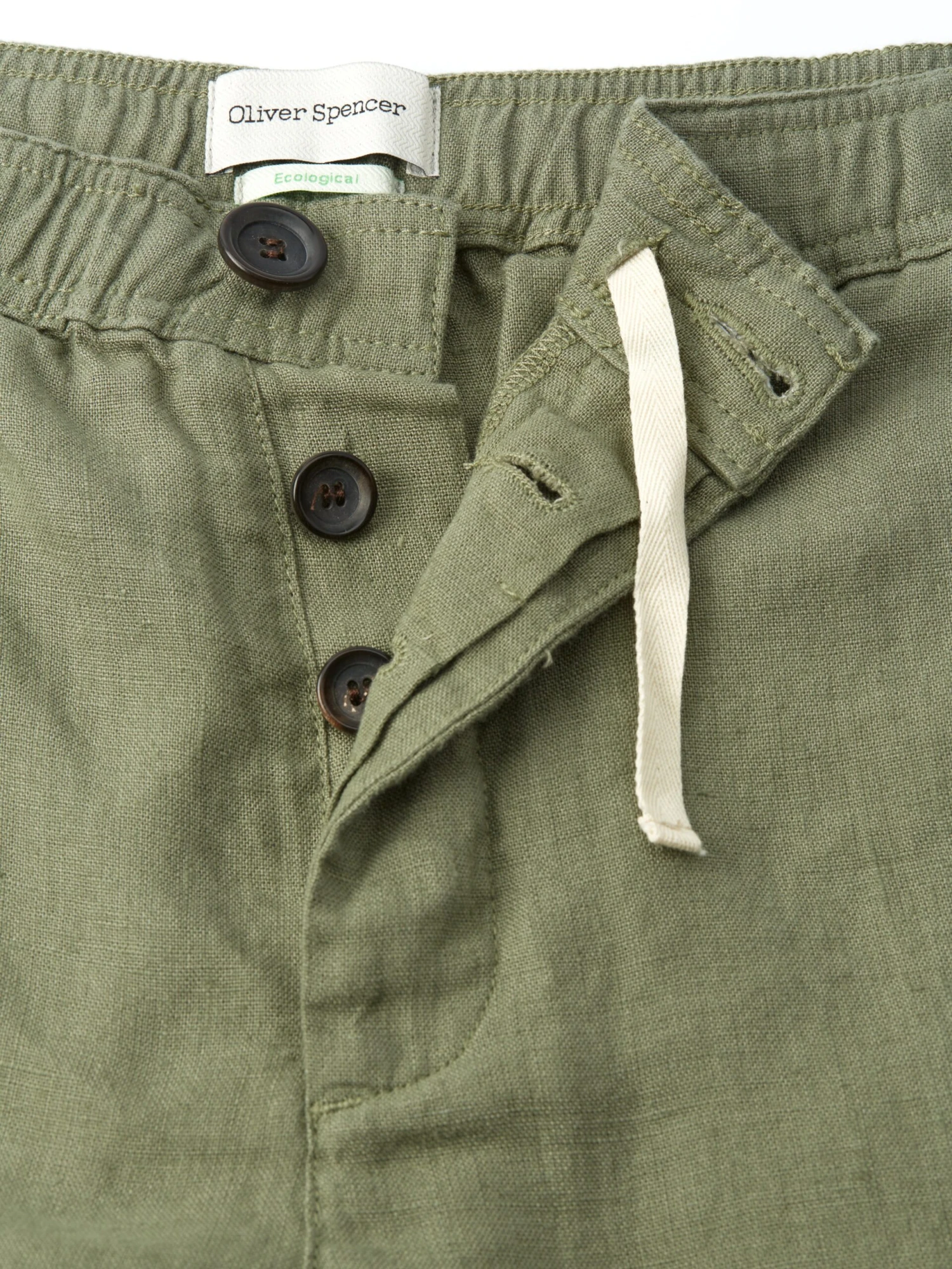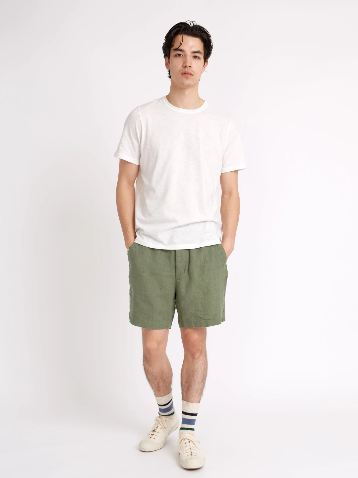 These drawstring shorts in 100% ecological linen are an excellent way to style tailoring in a relaxed and laid-back way. With an above-the-knee finish and an elasticated waistband, they are supremely comfortable, and look great worn with any of our unstructured jackets.