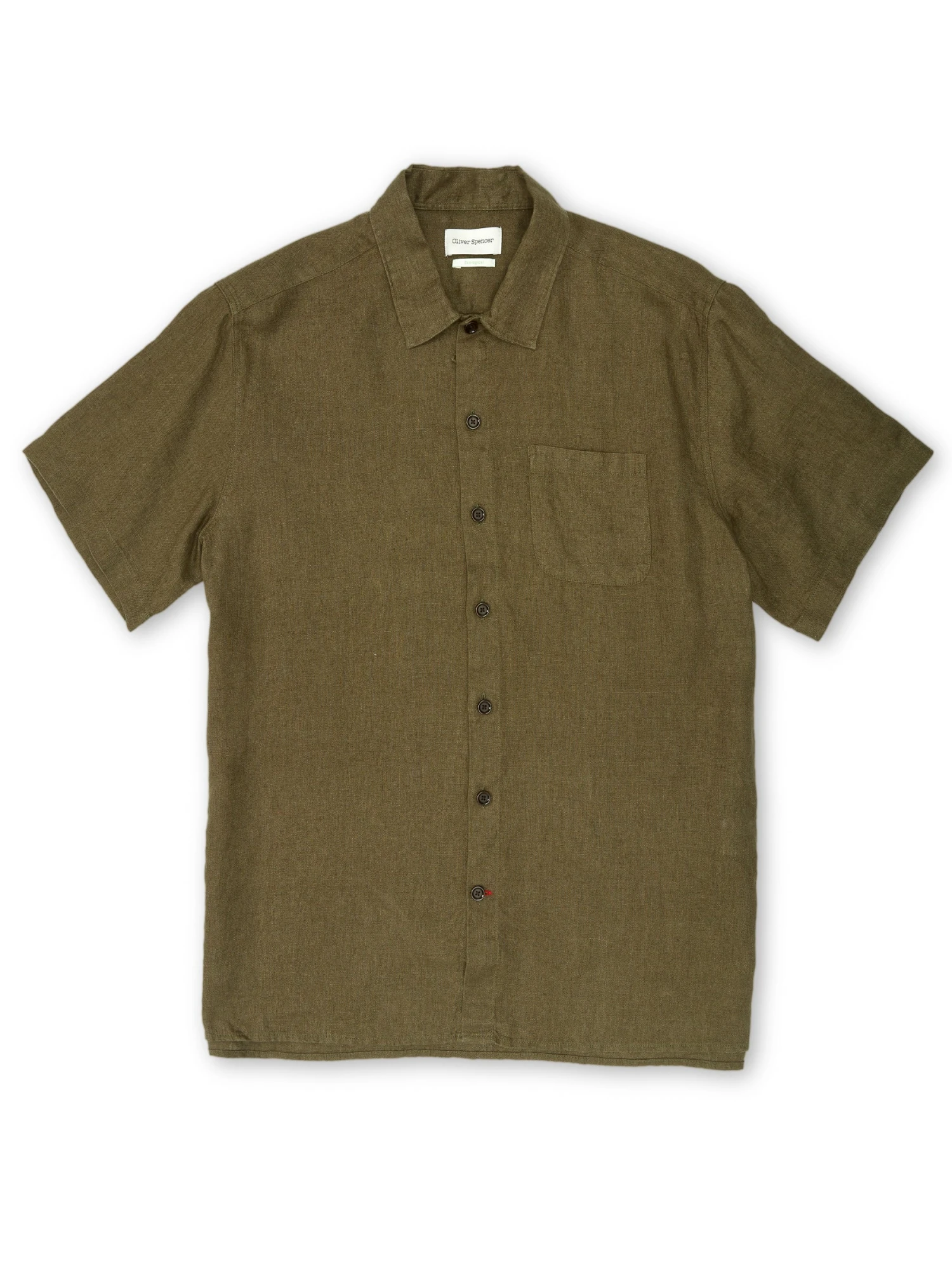 A modern classic, our Riviera short-sleeve shirt is non-negotiable summer silhouette. Cut from soft and lightweight linen, wear this green style casually with a pair of shorts and sandals or slide it into a more refined sartorial look with Oliver Spencer’s relaxed tailoring.
