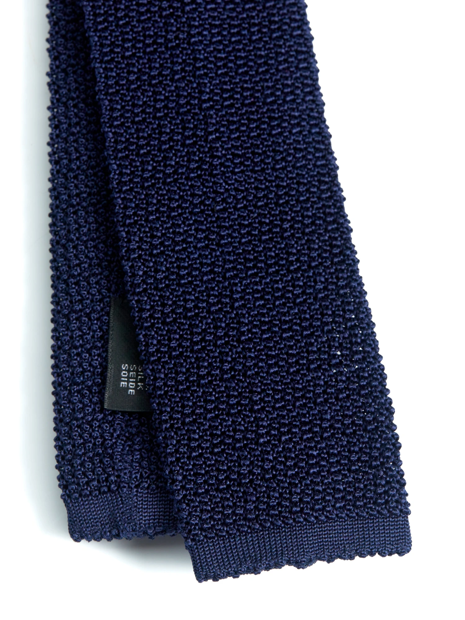 The knitted tie is a thing of textural beauty, especially when it is constructed from the highest quality silk. This version incorporates a rich navy hue, perfect for adding an element of contrast to your neutral suits, or complementing navy tailoring.