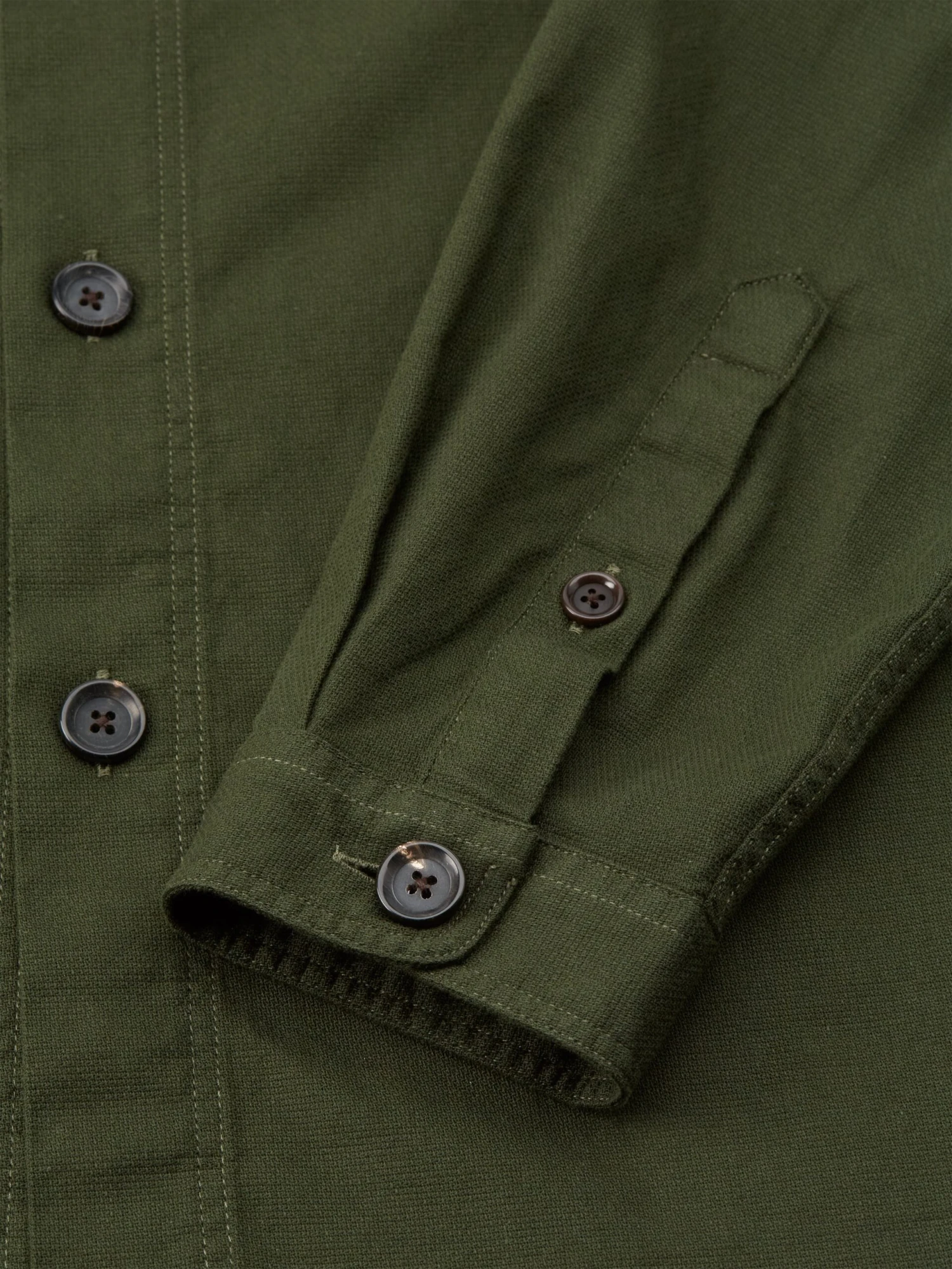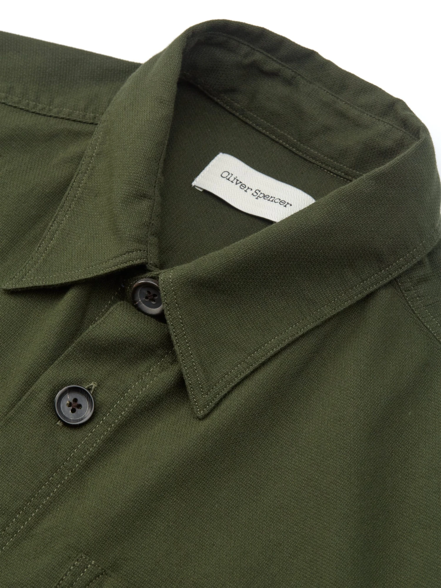 Inspired by vintage military shirt silhouettes, the Treviscoe shirt is a modern classic and a great fit for contemporary workwear wardrobes. This 100% cotton style in forest green is a great option for a breezy overshirt this season, paired with your favourite jeans or cotton chinos.